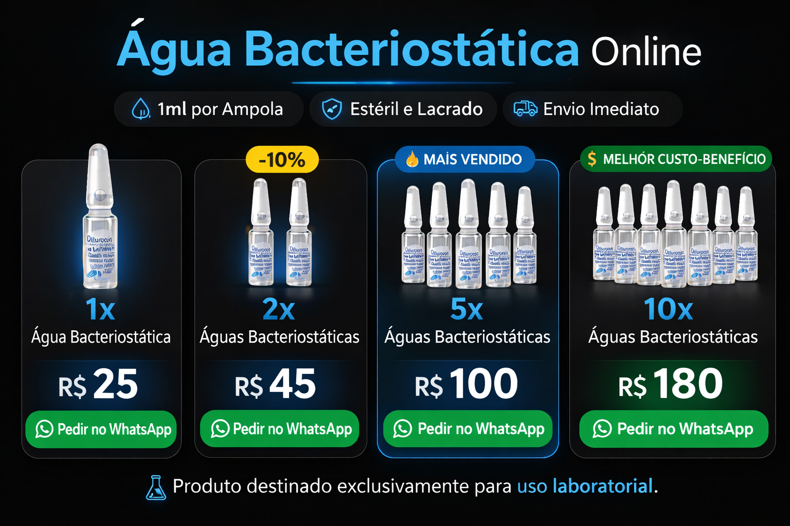 água bacteriostática para qualidade e confiança.